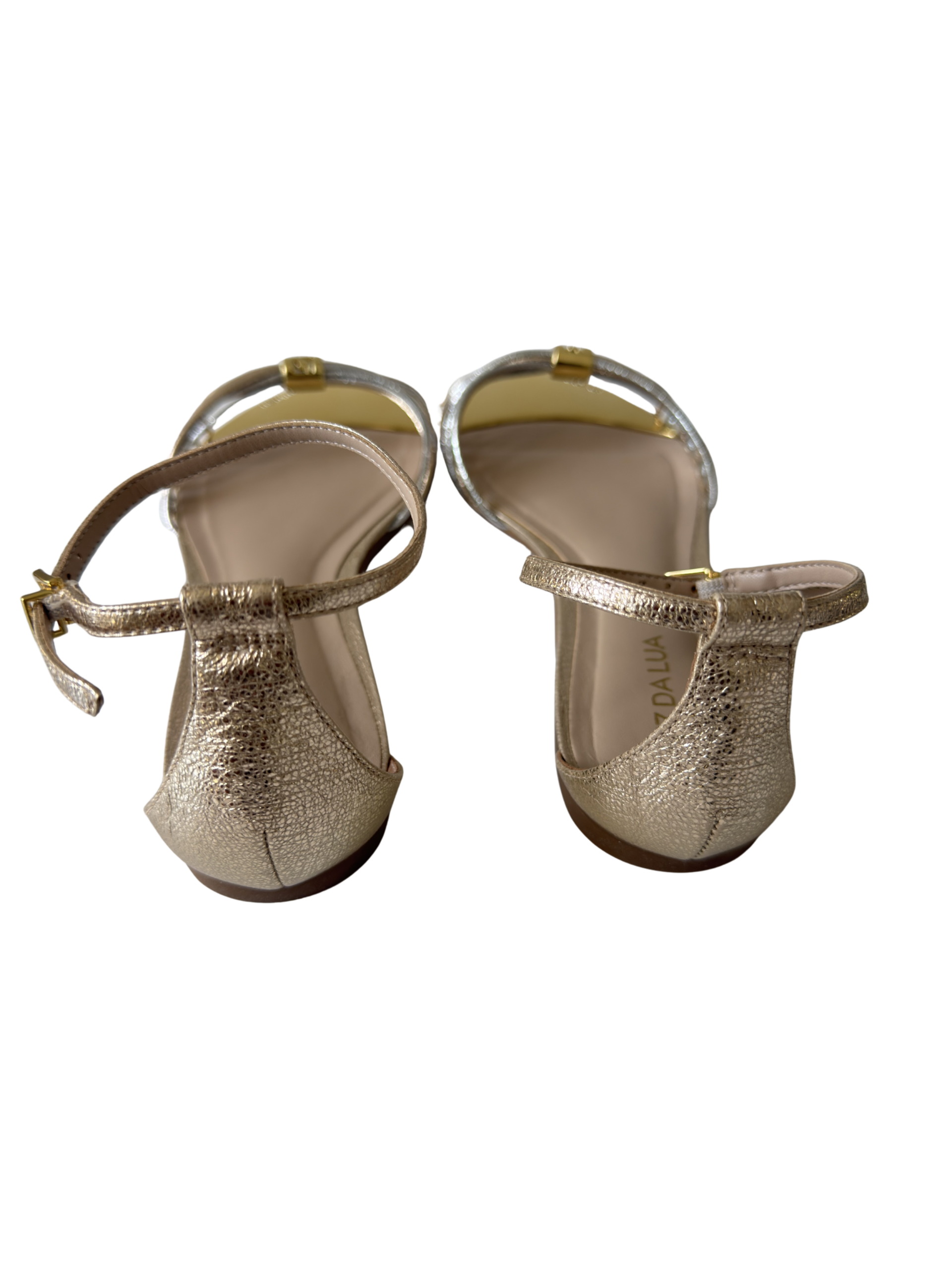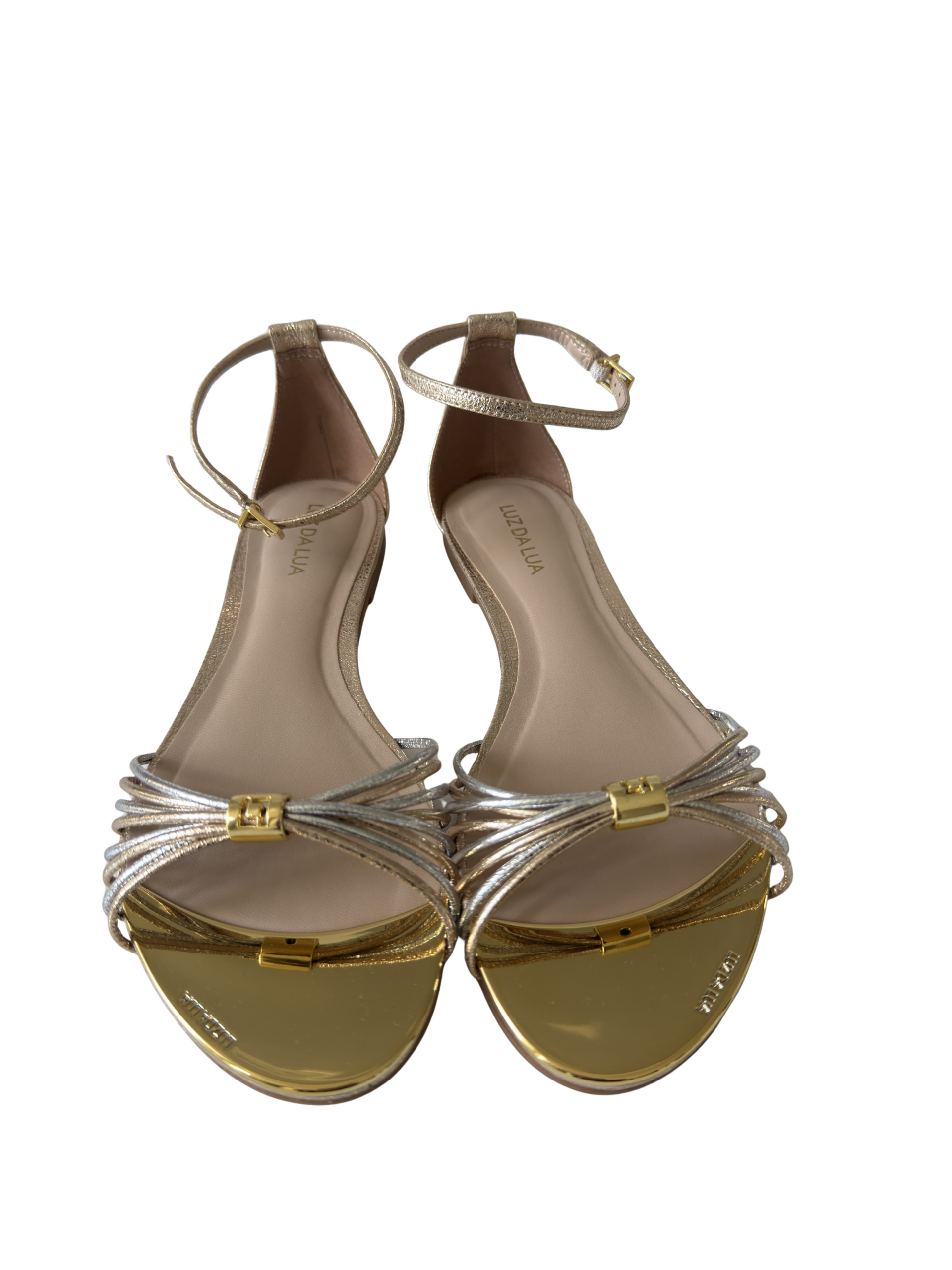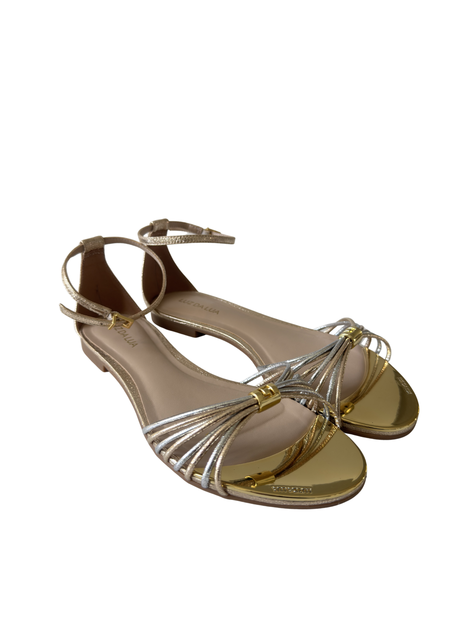 Chic strappy sandals flats designed with delicate gold and silver-toned straps with adjustable ankle straps.